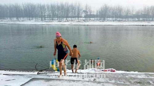 11月24日6时许,虽然我市上空飘着雪花,但仍有150余名冬泳爱好者来到沙颍河(周口大闸西1500米)游泳。11月25日早上,虽然气温很低,但这些冬泳爱好者依然来到沙颍河边,做过热身运动后,纷纷跳入冰冷的河水中。