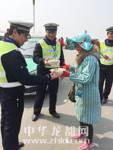 太昊陵庙会开幕以来,每天都大量的车辆和游客涌入淮阳。为了保障交通顺畅,淮阳县交警坚守岗位,经常忙得顾不上吃饭。看他们如此辛苦,周边群众自发为执勤交警送饭。此外,为执勤交警送饭的还有很多警嫂。淮阳交警大队城市中队队长闫本志说:“虽然我们在庙会期间每天工作都在10小时以上,但看到热心群众和民警家属对我们工作的理解和支持,我们感到很欣慰。”晚报记者 朱东一 通讯员 耿凯 摄