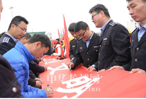启动仪式后,刘国连、王平和广大群众在“文明交通我承诺”主题横幅上签名。王平希望每一位市民以创建为己任,以签名为约定,以实际行动来传递文明、践行文明、弘扬文明,把周口镌刻在全省文明城市的光荣册上。