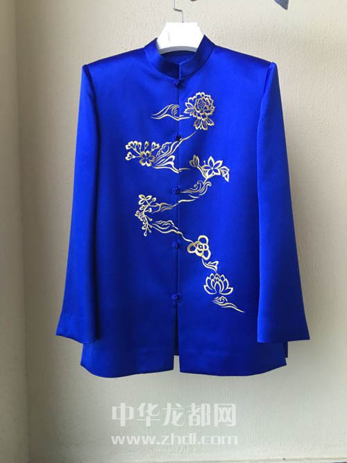 虽然以与会各国的国花来体现这次会议的主题是一个很新颖的创意,但为了体现出这些花的实体形态和立体美感,马艳丽和她的团队经过深思熟虑,决定采用中国画笔触国花写意绣的方式,用金线刺绣的手法把6种不同的国花绣在礼服上。使用金线轮廓绣的方式绣制纹样,摆脱了图案印刷的单一感,能带来更为灵动的气息,同时也能凸显我国历史悠久的刺绣技艺。