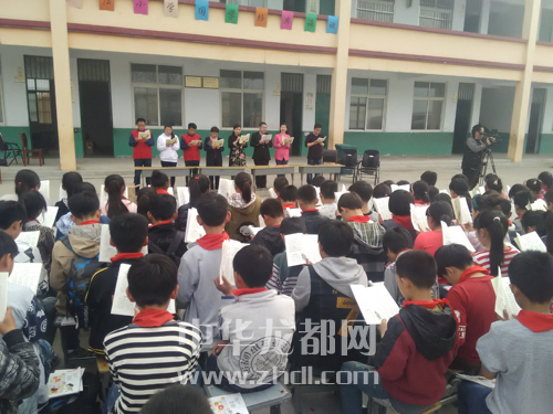 4月1日下午,川汇区石店小学的160多名学生跟随我市国学经典诵读志愿者一起朗读《弟子规》,朗朗读书声响彻整个校园。晚报记者 张燕 摄
