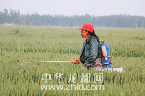 近日,西华县田口乡积极组织群众开展小麦中后期麦田保墒、防病、去杂等管理,确保小麦丰收。图为田口乡春秋岗行政村群众正在对小麦进行“一喷三防”。 蔡光宇 摄