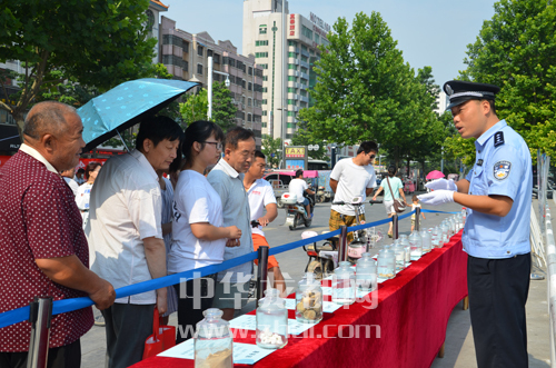 6月26日是国际禁毒日,当天上午,周口市公安局禁毒办联合周口市法学会、共青团周口市委、市卫生局、市食品药品监督管理局等单位在市区五一文化广场举办以“无毒青春、健康生活”为主题的国际禁毒日大型宣传活动。据了解,此次宣传活动共向群众发放宣传资料5000余份,接受各类咨询300 余人次,受教育人数近7000 人。