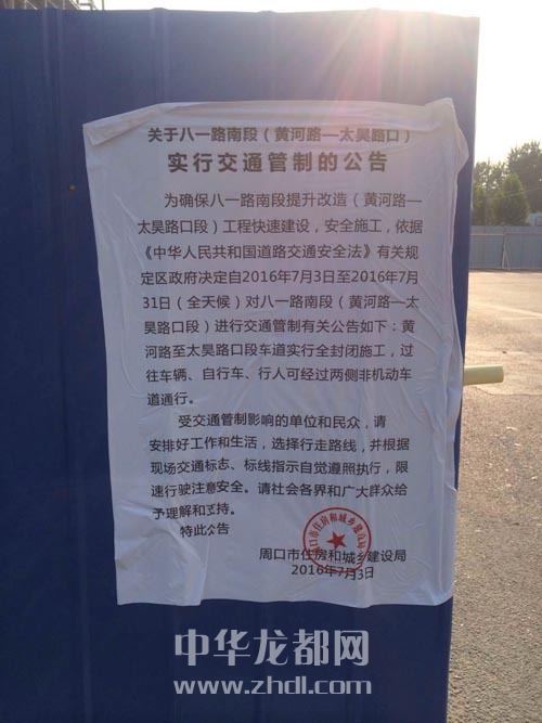 当日下午,周口晚报记者在八一大道南段看到,原火车站铁道口至太昊路路段的双向机动车道已全线封闭,“过往车辆请绕行”的交通警示牌也已竖立在路口,几辆施工车辆正在现场紧张忙碌地备料、开挖路面。