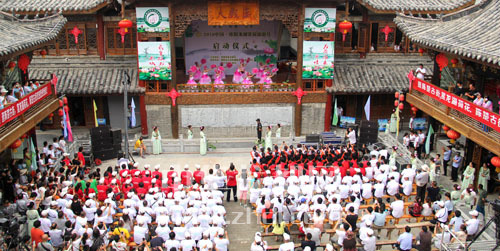 2016中国·淮阳龙湖赏荷旅游月活动除举行开幕式(如图)外,其间还将举行周口市第三届“龙湖杯”旅游形象大使选拔赛、“清风荷韵”书画名家作品展及“微腐败治理”廉政征文活动、首届淮阳沙窝西瓜节、国家湿地公园龙湖龙舟赛、千人共行“中华成人礼”及花卉盆景展等7项系列主题活动。