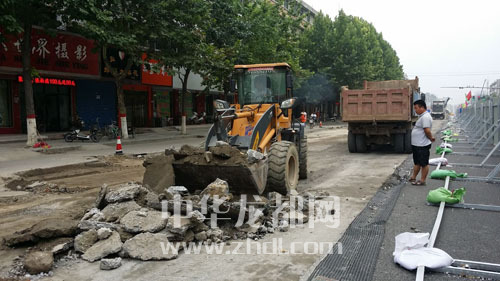 本报讯 (记者 李一 文/图) 7月12日,记者在中心城区建设路改造工程施工现场看到,道路南侧机械轰鸣,大型设备正在加紧作业(如图)。