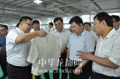 集中开工活动前,徐光、刘继标等市领导在周口阿尔本制衣有限公司调研。 记者 王亚辉 摄