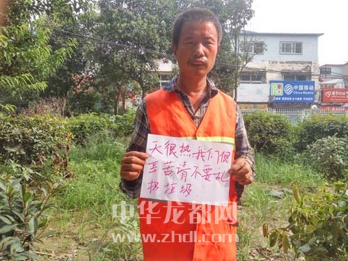 “以前,乱扔垃圾现象经常发生,给我们增加了不少工作量。天气热再加上任务重,每天都工作得很辛苦。现在好多了,自从路边配置了垃圾箱,大多数市民都自觉地把垃圾扔进垃圾箱里,为我们减轻了工作强度。”康为公说,但是也有不尽如人意的地方,还有少数市民乱扔垃圾,给自己和同事带来很多不便。“那如果有机会和那些乱扔垃圾的人说一句话,你想说什么?”随后,康为公写下了这样一句话:“天很热,我们很辛苦,请不要乱扔垃圾(如图二)。”