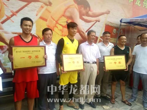 9月12日上午,2016周口市第三届运动会第三届中华龙舟大赛暨翎船捕鸭竞技赛在沙颍河中州大道桥至八一大道桥河段完成各项赛事,圆满结束。图为获奖代表队领奖。