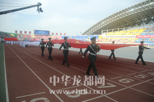 武警战士护送国旗入场