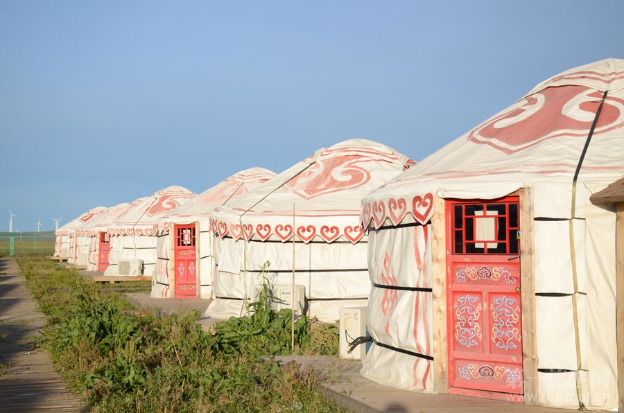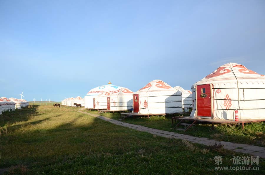 这里牛羊遍野、雄鹰飞翔,牧歌声声随风飘荡;这里绿草如茵,鲜花斗艳,遍地的黄花闪耀金光,这里是位于内蒙乌兰察布的辉腾锡勒大草原。辉腾锡勒是蒙语,意为寒冷的高原。九月刚过,这里已秋意正浓,冷风列列,大片大片的风车矗立在辽阔的草原上。汽车穿行其间,硕大的风车就在我们身边不紧不慢地旋转着,成为一道独特的风景。辉腾锡勒草原著名的黄花沟景区,以鲜花草原著称,蒙古包点缀在茫茫草原间,像一朵朵可爱的蘑菇。蒙古马在我们住宿的蒙古包外悠闲地啃吃青草。入夜,皓月当空,烤全羊的香味飘荡在空气中。蒙古包內,热情的蒙古族汉子和姑娘,将对这片辽阔土地的热爱,化作豪迈而又浑厚的歌声,醉倒游人一片!