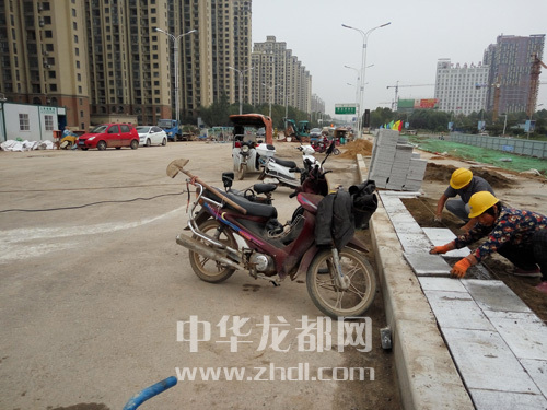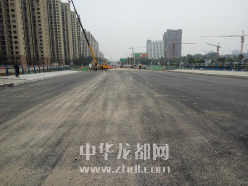 10月14下午,周口晚报记者在互通立交施工现场看到,立交桥桥面周口大道部分路段已经铺上沥青(如图二),两侧正在安装护栏、铺设行道砖(如图三)。互通立交主体工程已经完工(如图四),工人们正在进行相关的配套建设。
