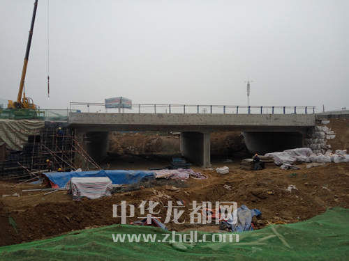 一桥,是互通立交的主体。整个立交桥净高4.9米,有两个桥洞,中间由宽1米的墙隔开,每个桥洞净宽16米,设置单向双车道和两米宽的人行道。加上立交桥两侧各1米的墙宽,整个立交桥宽35米。同时,立交桥位置向北的周口大道两侧将增设宽2.5米的人行道。