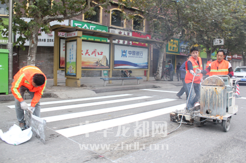 10月19日,周口晚报记者在中心城区七一路与文明路交叉口、七一路与荷花路交叉口等处看到,有关部门在这些地方新画了道路标线,更好地服务市民平安出行。晚报记者 徐松 摄