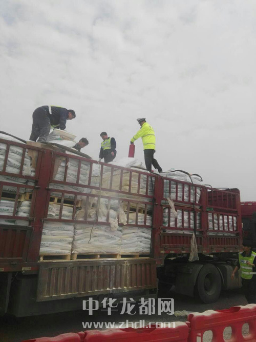 接到求助后,4位高速交警迅速赶往现场,并在第一时间把警情汇报给高速指挥中心。随后,中队长杜金涛带领所有执勤民警全员参与救援。他们一边设置警示区域,疏散围观群众,一边通知收费站和高速路政人员暂时禁止车辆驶入,防止次生事故发生。
