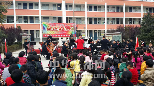 11月11日下午,周末公益剧场民族交响音乐进校园活动在许湾乡李灵希望小学举行, 周口民族管弦乐团的老师为该校600多名师生上了一节别开生面的音乐课,让孩子们近距离感受到交响乐的魅力。晚报记者 王晨 摄