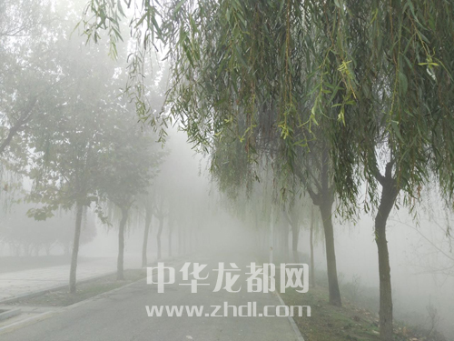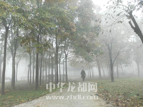 11月13日,周口市区被浓雾笼罩,建筑物和树木在雾中若隐若现,恍如仙境。王银行 摄