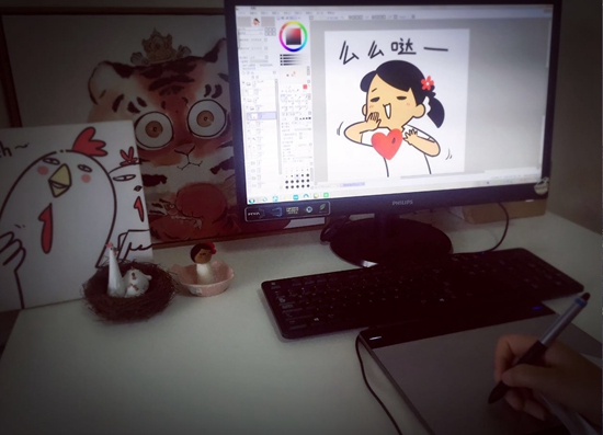 创作者正在绘制“制冷少女”表情。 受访者供图