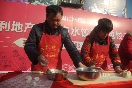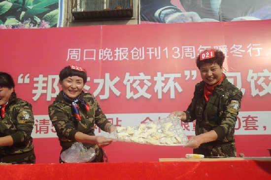12月4日,周口晚报创刊13周年暖冬行大型公益活动——包饺子大赛启动第一场分站赛,69组138名选手激烈角逐后,6组选手获得分站赛一、二、三等奖。晚报记者 朱海龙 摄