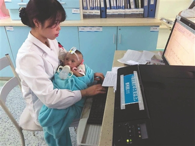 四川大学华西医院心血管疾病综合病房的护士骆敏边工作边照顾孩子