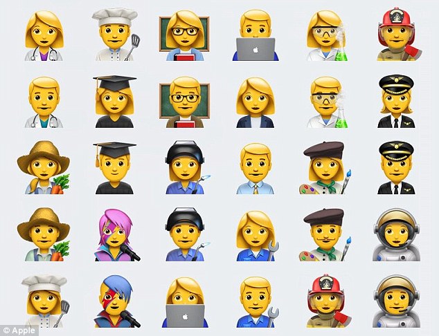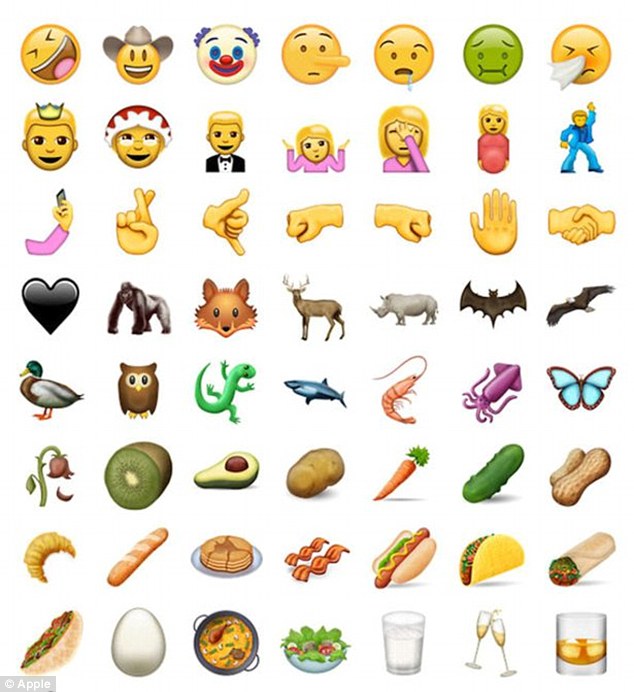 这一系列表情由统一码联盟于今年6月份更新,作为Unicode 9.0更新的一部分。72款最新表情中,包含“交叉手指”、“捂脸”“牛油果”“小丑”等表情。除此之外,还包括一系列动物,如大猩猩、狐狸、鸭子、鱿鱼等。其中,最大的变化在于包括了可以选择性别的各类职业,如宇航员、消防员、焊接工,甚至摇滚明星。