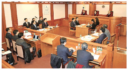 12月22日,韩国宪法法院就总统朴槿惠弹劾案进行首次预审。图为当日,在韩国首尔拍摄的预审现场。 新华社发