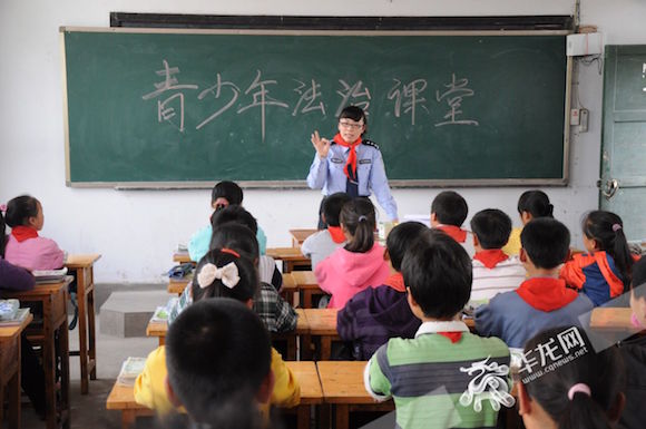 在青少年法治课堂上,志愿者们为孩子们进行普法教育。市司法局供图 华龙网发
