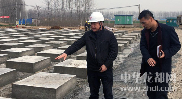 汪敏向记者讲述高铁淮阳站的地下管桩工程。