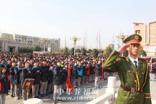 中华龙都网讯(周口报业全媒体记者 刘华志)3月6日上午9:40,文昌中学师生们整齐列队守护在升旗台下。九名护旗队昂首阔步抬着鲜艳的国旗来到旗杆下,在雄壮的国歌声中,升旗手将国旗缓缓升起,全体在场师生挺直身躯面向国旗行注目礼。随后,全场师生一起合唱国歌,国旗在歌声中徐徐飘扬。