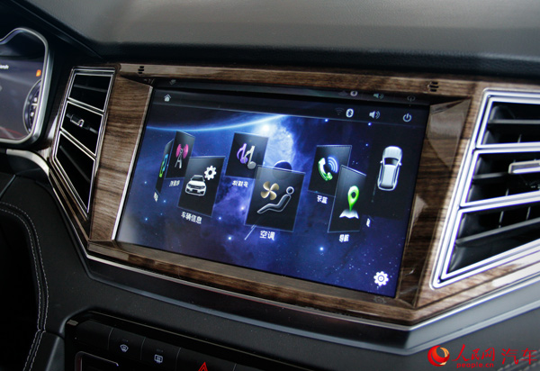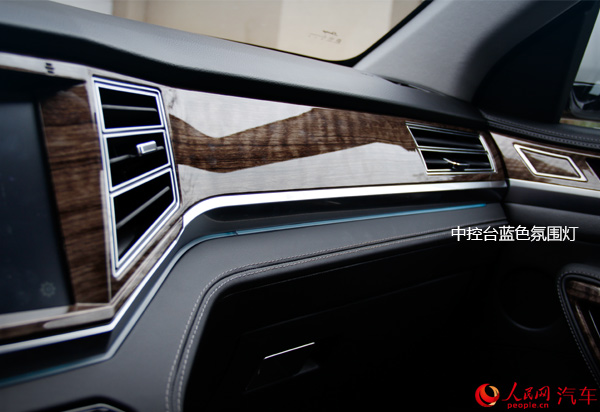 坐进大迈X7的车内,面前是大面积的木饰纹理以及皮革包裹的中控台,给人的第一印象还不错。如果你去触摸、细看它们,感觉有些地方并不如看起来那么美好,还可以提升。不过这辆车还不是量产商品车,在真正的量产车上,它的装配工艺会更好。另外,该车还有一款蓝色为主色调的内饰风格,看起来更为精致独特。