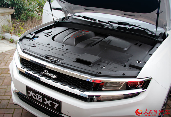 在今年3月份先期上市的众泰大迈X7将搭载1.8T涡轮增压发动机,其最大输出功率177马力,峰值扭矩245牛·米。打开前盖后,被密封得严严实实的发动机完全不露真容,厂方人员表示这对于抑制噪音振动起到一定作用。
