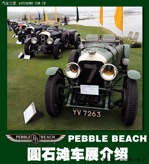 首次圆石滩车展只有30辆车展出,当时展出的汽车被划分成了一战前、一战后及全新的概念车三大类,如今圆石滩车展依然按照这种分类方法展出。只是车型被分的更加细致,其中包括了皇家汽车、德国摩托车、一战前汽车、敞开式车轮赛车、欧洲经典汽车等,正因为第一届圆石滩车展取得了圆满的成功,所以这个车展就被不断的延续了下来,而原本的加州卵石湾公路赛在1956年随着一名车手的丧命而正式停止。