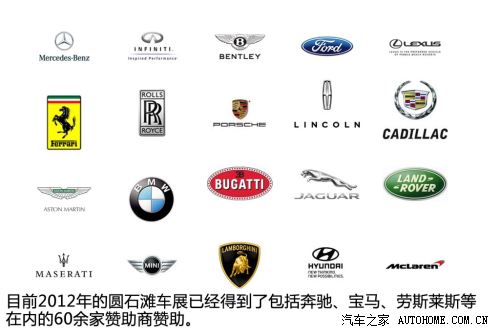 在赞助商方面,2012年的圆石滩车展到目前为止已经有包括劳力士、兰博基尼、宝马、奔驰、法拉利等品牌在内的60余家赞助商提供赞助,在现场你会看到很多这些品牌的广告,当然这些品牌的广告及赞助费的部分会被主办方捐献给慈善机构。