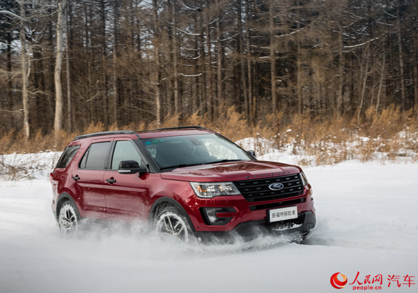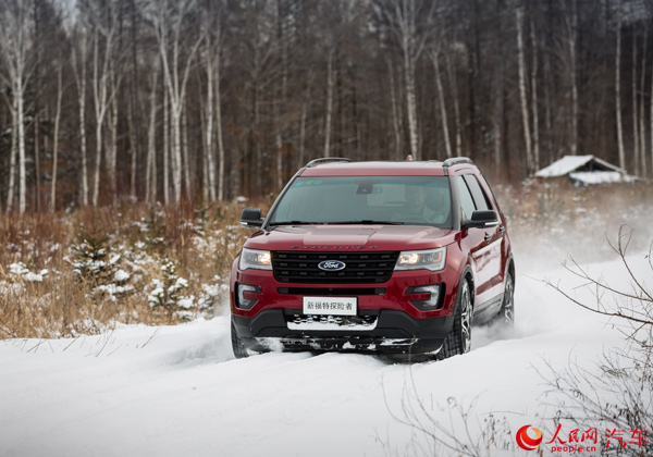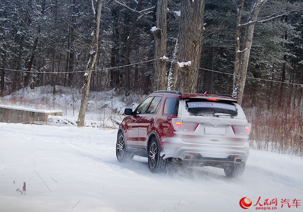 不过,你依旧能感觉到探险者更倾向于公路驾驶,它较为绵软的悬挂系统在雪地上表现镇定自若,沉重的车身在雪地上轧出深深的车辙。由于积雪比较严实,雪地胎又有着很强的“攀爬”性,在皑皑白雪中劈出一条路来的感觉非常奇妙。