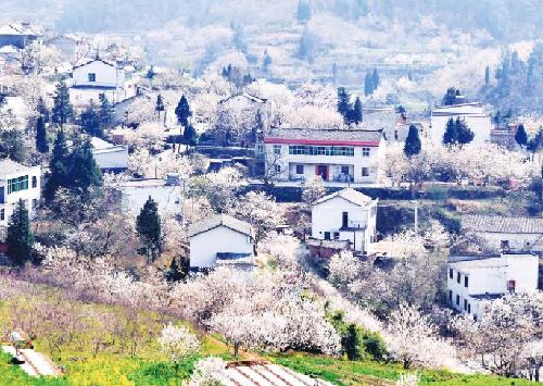 近年来,湖北十堰樱桃沟村借“鄂西生态文化旅游圈”建设东风,大力发展樱桃、桃子、蜜橘和无公害蔬菜产业。每到花开的季节,众多游客前来观花赏景,为该村居民带来商机.生态产业带动了旅游产业发展,让樱桃沟村民过上了小康生活。图为3月8日,樱桃花次第开放,樱桃沟村成为一片花的海洋。叶桓/摄