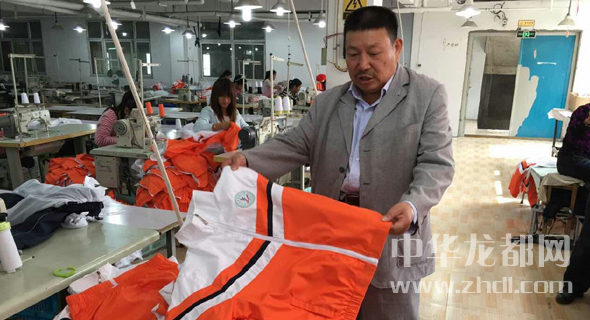 李东明在投资的服装厂察看产品质量。记者 孙智 摄