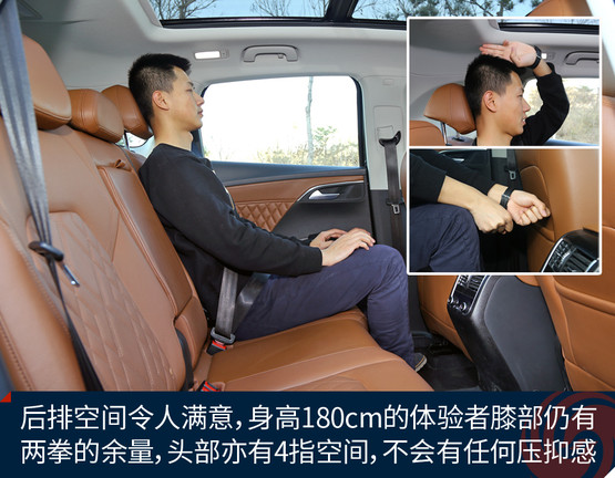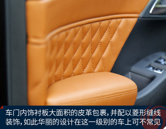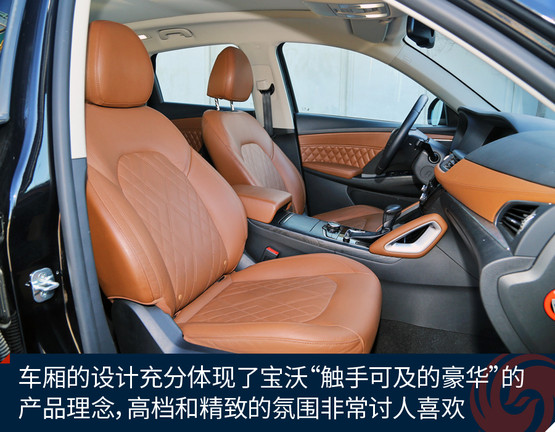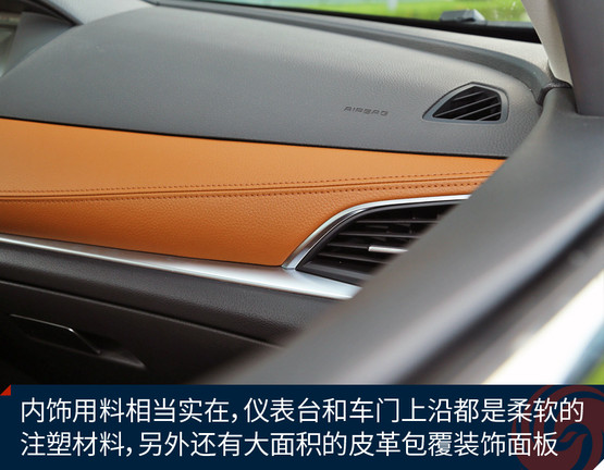 除了科技配置领先,宝沃BX7的车厢氛围也让人切实感受到这个品牌的诚意:我们试驾的四驱旗舰版车厢内大量使用的皮革覆盖件,并且采用漂亮的菱形缝线花纹点缀起来,这是宾利那个级别的顶级豪车惯用的装饰手法;仪表台、车门上沿的注塑材料都是很柔软顺手,特别是考虑到这款车尚不到25万元的售价,宝沃的确兑现了他们所承诺的“触手可及的豪华”。