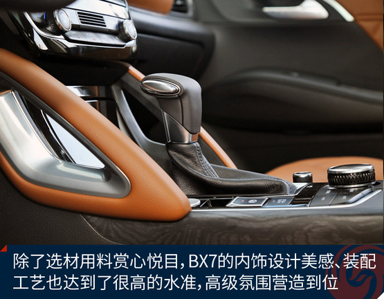 BX7的隔音材料总体够足料,光在车门上就铺设了两个整圈+窗框上多半圈的密封隔音胶条,在这一价位的车型里绝对厚道。底盘的厚重感刚才提到了,高速行驶时无论风噪还是轮胎噪音,抑或发动机噪音都挺有节制的,稍微来点音乐就能掩盖掉,因此这个车跑高速公路是让人心情愉悦的,车内安静,而且非常平稳。