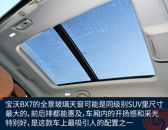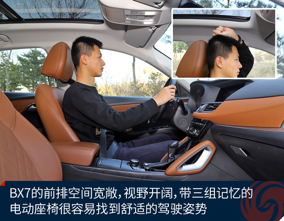 BX7是一款同时拥有5座、6座和7座布局的SUV车型,这款长度超过4.7米的SUV的确有能力在行李厢布置第三排座椅。不过这次我们试驾的车型仍是五座配置,对于这样尺寸级别的SUV前后排空间自然都不是问题,相当宽阔而且乘坐感非常舒服。旗舰版的配置亦相当丰富,三温区自动空调和前后排座椅加热,以及同级别堪称无敌的超大全景天窗,在配置方面很有吸引力,而再一次综合其价格来看,明显优于同级别平均水平的标准配置再一次诠释了“触手可及的豪华”这一产品理念。
