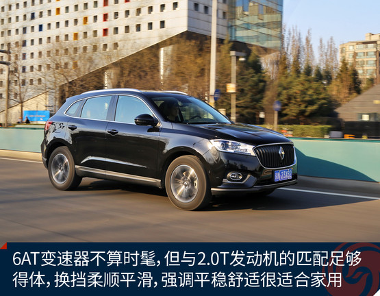 6速手自一体变速器在今天看来并不算时髦,档位数不算很多但这台爱信的变速器与2.0T发动机的匹配做的不错,换挡逻辑很清晰也够聪明,该温柔的时候温柔,需要快的时候也不含糊;总体来说宝沃的动力总成设定是比较舒适化的设定风格,换挡平顺,动力衔接顺滑,虽然功率数字很好看,但实际释放的方式很文雅,不会让乘客觉得很唐突,作为努力争取家庭消费人群的宝沃,这样的设定相当讨好。