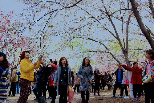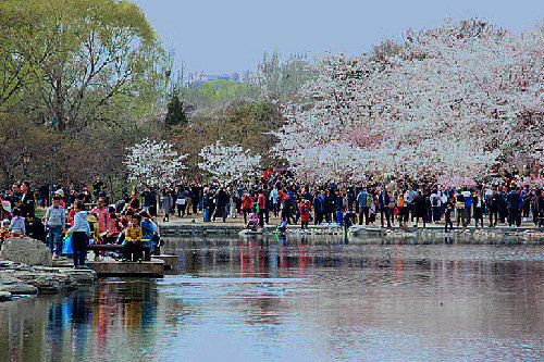 日前,第29届北京玉渊潭樱花节开幕!游客在里面可以欣赏到20个品种2000株樱花开放的壮美奇观。盛开的樱花呈现出堆云叠雪的景观,引人入胜,春风拂来,樱花瓣飘摇落下,游人在公园内赏樱、拍照真是一幅绝美的画面。成雪峰/摄