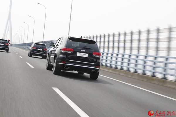 为了显示出大切诺基的全能性,组织者为试驾者提供了多种路况条件,既有山村国道、高速公路,也有人为制造出来的高难度越野路段。在铺装道路上行驶,大切诺基就像一部舒适性极佳的轿车,平顺线性的V6发动机与8AT变速箱的配合非常默契,可以从容应对路面上的不同状况,无论是低速跟车还是中段加速超车,它都可以在给予车内乘员积极舒适性的前提下轻松应对。大脚油门超车,即便是发动机转速进入高转速区,也不会出现那种声嘶力竭的吼声,充足动力储备让可以轻松完成超越。虽然不是一款以运动性为卖点的车型,但大切诺基的公路性能并不差,在高速公路上巡航,它有着非常不错的行驶稳定性,对于风燥、路噪的控制也非常不错,并不会有太多扰人声音传进车内;高速通过弯路时,前双叉臂、后多连杆式悬挂会给予车身足够支撑,虽然其侧倾要略大于纯粹运动轿车,但也绝对不会出现让人不安的倒塌感。