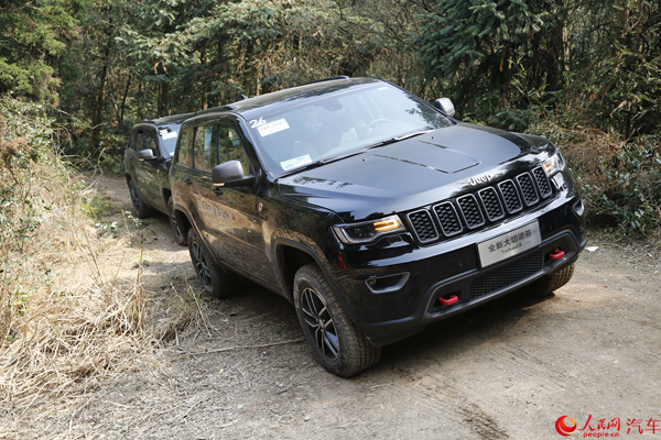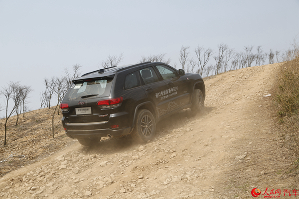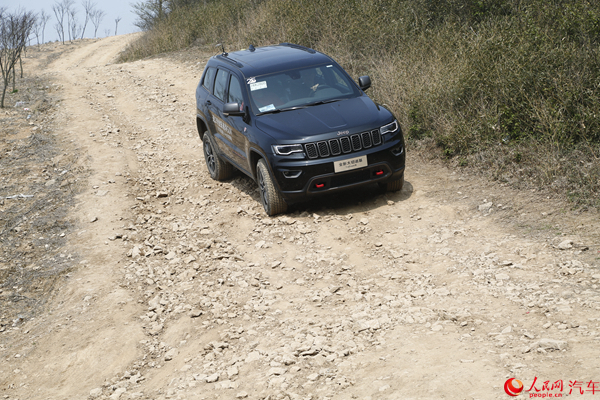 而为了检验大切的四驱性能,主办方还特意准备了一条自然形成的陡坡,其坡度最大甚至达到了接近45°,这对任何SUV来说,都是不小的考验。而这对于Trailhawk高性能四驱版大切来说,却不过是轻而易举的事。它配备Quadra-Drive II智能全时四驱系统,标配低速扭矩放大功能,能将发动机的扭矩放大接近3倍,再加上强大的ELSD电子后轴防滑差速器锁止功能, 让Trailhawk版车型在面对这样的陡坡时游刃有余。