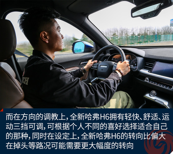 而在方向的调教上,全新哈弗H6拥有轻快、舒适、运动三挡可调,可根据个人不同的喜好选择适合自己的那种,同时在设定上,全新哈弗H6的转向比偏大,在掉头或者驶入一些比较刁钻的小路时可能需要更大幅度的转向。
