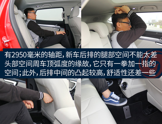 体验者身高175厘米,前排座椅降到最低的时候头部还有比较充足的余量,完全不会感觉到压抑;不过后排头部就不太行了,头部距离车顶非常接近,要是身高再高一些的乘客坐进后排,已经基本上快顶到头了。储物空间中规中矩,基本上没有太多让人惊喜的地方。扶手箱的空间不小,高度也合适,可以放些杂物。