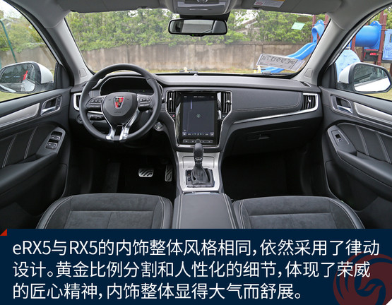 内饰设计上,荣威eRX5的设计团队通过对人手比例、操控和视觉平衡的研究,以符合黄金分割比例的搭配和布局方式,实现视觉美感与舒适性的无缝结合,体现了“律动”设计“洗练”的造型特征,延展了视觉空间。中央10.4英寸的中控屏搭载了上汽荣威与阿里巴巴共同研发的斑马车载系统,让车载生活更加智能。并且荣威eRX5的12.3英寸液晶全虚拟仪表,可与同级最大的10.4英寸高清触控电容屏实时互动,提升了整车的科技感。座椅采用了豪华品牌惯用的翻毛皮材质,不仅提升了档次感,也提升了驾驶乘坐的舒适性。