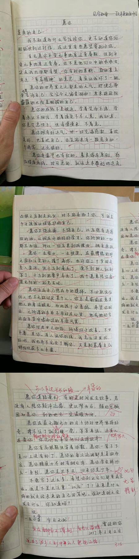 一摞作文本摆在办公桌上,看到《愿你》时,北京四中语文教师王允忍不住画了很多条红色波浪线,“每一句都是那么舒畅,就像泉水在心间流淌。”她抄起手机,像往常一样,拍下文章,发到了朋友圈。 “愿你付出甘之如饴,所得归于欢喜。” “愿你的流泪每次都是喜极而泣,愿你精疲力尽时有树可倚。” “愿你的世界里天天都是好天气。即便忘了带伞也要告诉自己:宝宝今天偏要淋雨!原来驱赶阴霾的太阳是明媚的自己。” “愿你走出半生,归来仍是少年。” …… 张咏言的作文《愿你》 一个月前,北京四中初二语文组围绕主题教学“人生导航”,借鉴书信朗读节目“见字如面”的形式,让学生写一封信。 学生张咏言的《愿你》在朋友圈得到了很多赞誉。几天后,有人把文章贴到了微博@北京人不知道的北京事,人民网转发后,阅读量很快超过800万。随后,数十个大V开始关注,评论里,也逐渐出现了褒贬不一的评价。朋友们陆续给王允发来网上的截图,她才感觉“这事好像闹大了”。 中国青年报·中青在线记者在学校见到了这位语文教师,“文章就像孩子模仿父母口吻写给自己的期望,说出了很多中年人想说的话。翻到最后,才发现是她写给未来的自己的。”王允说,这篇文章让很多人再度重温青春,能这么火,她也很意外。 一年前,王允开始任教张咏言所在的班级。为调动孩子们的写作热情,她玩起了自媒体,教室里悬挂的“晴耕雨读”四个字成为微信公众号的名称。公众号的内容多是学生们的日常——父母和孩子以《我们仨》为题一起完成的文章;学生们的配乐朗诵、诗歌仿作、古文改写;一位学生把《送东阳马生序》作者宋濂的经历改写成歌词并配乐演唱;期中考试前,各科大神把笔记发了上去,一位学霸用漫画画出了英语复习秘籍。 起初,微信公众号上的内容,王允会逐字逐句修改,之后逐渐让学生去参与,培养了一个五人小编团队。渐渐地,张咏言修改过的内容,开始充满了情感和节奏。原本一篇中规中矩的文章结尾,张咏言为其注入了“生命”: 诗让我们变得感性而柔软,善良而有内蕴。激昂热烈也好,沉郁迷离也罢,愿我们,都活成一首首的深情。 文章走红之后,北京音乐广播电台联系学校,挑了包括《愿你》在内的4封学生信件作为广播素材。临近深夜11点,家长和学生准时守在电台前收听。 王允觉得,《愿你》的偶然走红,也与对学生写作的培养有关。 阅读是学校里永远绕不开的话题。最近的阅读季,校园各个角落都挂着被剪成了风筝状的纸张,上面印着文学作品,统一用红色丝带串起;教师们仿照央视节目,举办了诗词大会比赛;校门口的橱窗,贴着学生给诗歌作的画——一个女孩站在泉水旁凝望,画风宁静幽冷——这是张咏言对林徽因一些作品的理解。 教书这些年,王允第一次和学生成为舆论焦点。文章刚火起来的时候,她和张咏言开玩笑:“你现在成大网红啦。” 随后,有网友指出,文章中的句子有模仿痕迹,其中,被传阅最广的那句——“愿你走出半生,归来仍是少年”与一本书名雷同。批阅作文时,王允也发现这句并非张咏言原创,“但是她记住了这句话,并运用到自己的文章中,这句话点亮整篇文章,这是值得鼓励的。” 平时,王允会有意让学生们仿写经典作品。一位学生读了《星星和蒲公英》后,写了首“四中与篮球”——蓝色的海洋摇旗呐喊,就像狂风在空中呼啸。球员的经历,我们看不见,看不见它却在那里;张咏言和同学根据《你是人间的四月天》,完成了诗歌《我说你是盛夏的香樟》《你是人间的焰火》《你是六月的雨》。 半个月以来,王允思考了很多,“原创的确可以自由自在地表达思想,但在成文时,有表达不到位的地方,适度借鉴模仿,可以更有章法地呈现。一篇好文章,最关键的是看作者想要表达的思想内核是否精彩。” 对于这篇文章,张咏言的家人也给出了正反两方面评价。父亲直言“创造力不够”,但安慰她,早期学生作品都只不过是智力训练,经由模仿和吸收,逐渐学会把文意准确地表达出来。 张咏言说自己读的书与同龄人相比并不多,但她对文字很热爱、敏感。初一时,她在全国微书评大赛中获奖。那是一篇《小王子》的读后感,其中一句引发了很多人共鸣:我们不能保持永远,但我们可以渴望永远,永远渴望着,自己最初的模样。对于“背诵好词好句串成鸡汤文集锦”的评价,张咏言也有过思考。五六年级时,她喜欢读青春类小说,风格清新,词藻华丽。父母担心她只会写那种多愁善感的内容,提醒她要增加文化底蕴。张咏言发现,一些很美的句子因为没有份量很快就被淡忘,撑起文章深度的,还是经得起考验的思想。 《愿你》走红网络后,也有网友提出质疑,是不是现在孩子看网络小说多了,只会写伤春悲秋的句子? 王允也担心学生们把握不好阅读流行文学和严肃文学的分寸。在她看来,流行文学也有正面的内容,比如一些流行文学里构建的世界,宣扬的主题和写作方式上都有值得学习的地方。 |