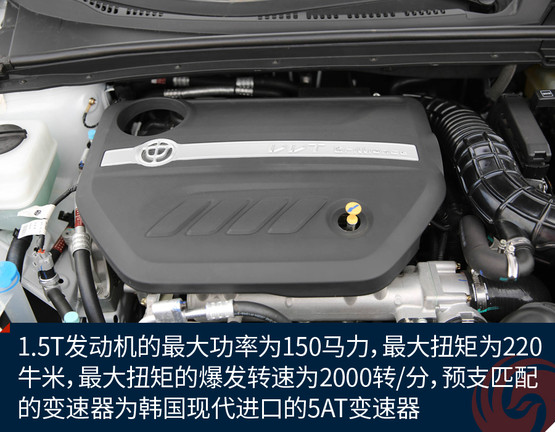 中华H3的动力系统为1.5L和1.5T两款,我们试驾的顶配车型搭载了1.5T发动机和韩国现代进口5AT自动变速箱。