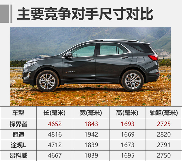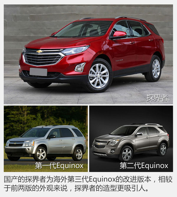 探界者其实并非科帕奇的换代车型,而是完完全全的一款全新车型,国产探界者也并不是第一次出现在世人面前;探界者早在北美市场供应,名为Equinox的它是通用汽车在北美市场最受欢迎的车型之一。这次引入国内的探界者已经是它的第三代车型,而第二代在整个北美市场位列全部车型销量榜的第15位,可见其可靠的实用性和较高的性价比受到了多大的认可。