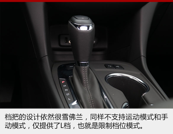 有一点我不是很明白,雪佛兰最新的设计理念已经开始向运动发展,但是它旗下的车型都不带有运动模式和手动换挡模式,仅仅是提供了L档,也就是所谓的限位档,通过档把上方的加减按键可以手动使变速箱限制在相当的档位上,D档模式下此按键无效。